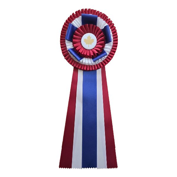 Rosette à trois plis de 20 cm (8 po) avec 5 pétales carrés et cinq rubans de 45 cm (18 po) de longueur.